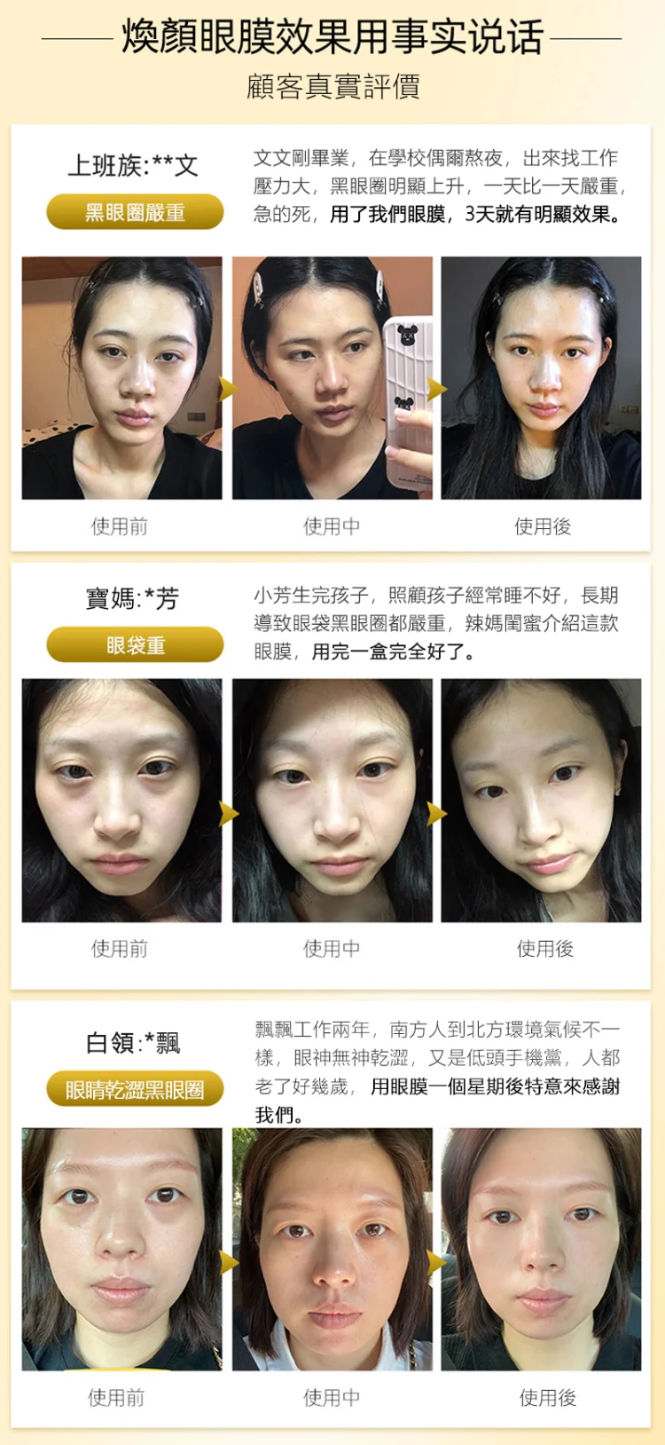 半小時前Kevin老師強烈推薦醫美級【黃金煥顏緊緻眼膜】 裹有黑松露、魚子醬、六勝肽等專櫃等級去眼袋成分,28天有效緊緻眼周去眼袋,限時搶購,售完恢復一盒1399!!! - 最優惠】買三送四僅需1998