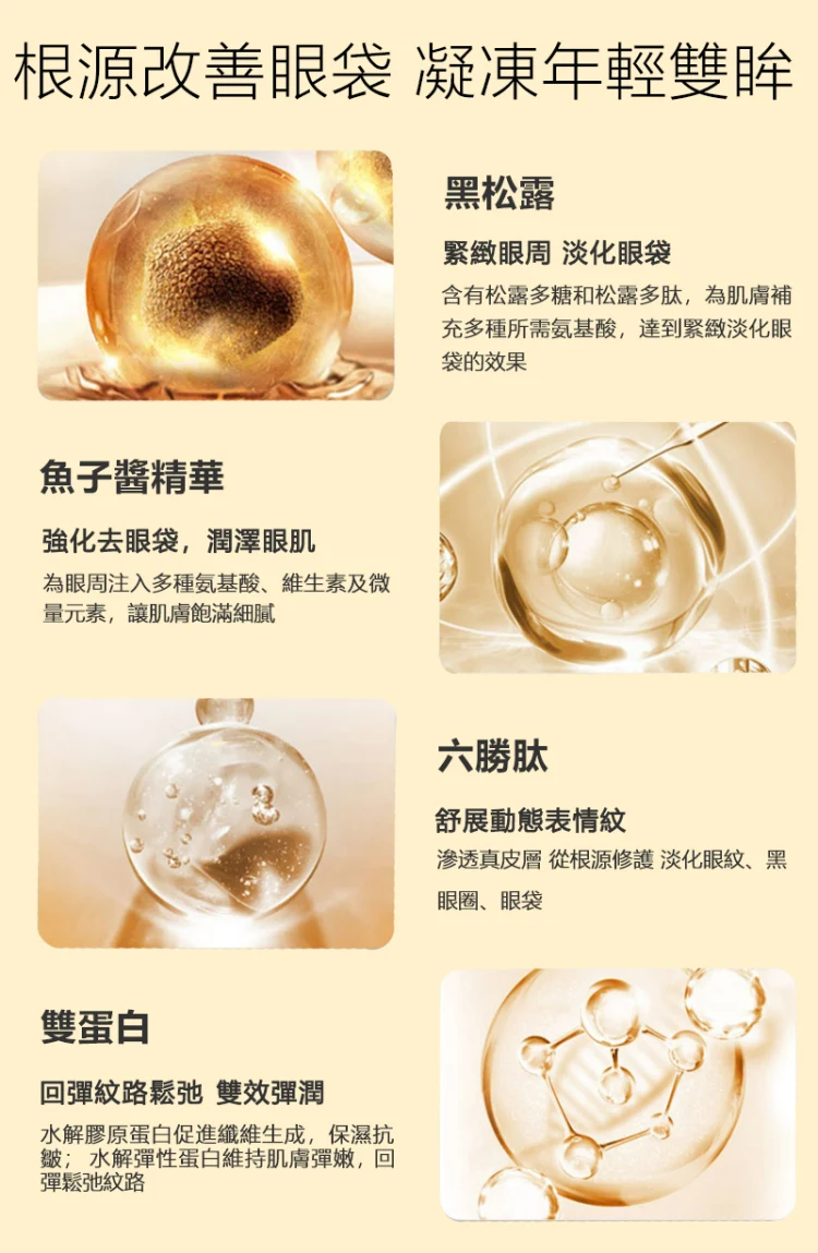 15分鐘前Kevin老師強烈推薦醫美級【黃金煥顏緊緻眼膜】 裹有黑松露、魚子醬、六勝肽等專櫃等級去眼袋成分,28天有效緊緻眼周去眼袋,限時搶購,售完恢復一盒1399!!! - 限時特價】買二送二僅需1690