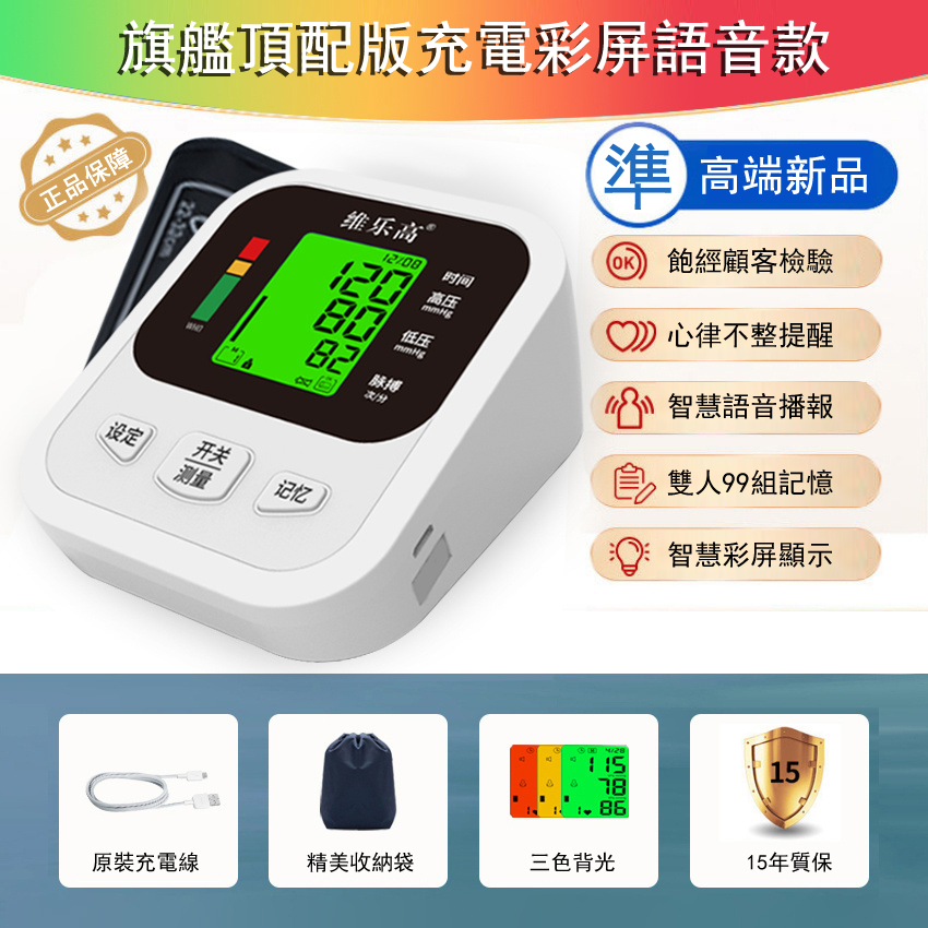 15分鐘前【終身質保】美國進口醫用精準電子血壓計 一款為#老人 貼心設計的血壓計 一鍵精準測量,全程語音播報 - 彩色螢幕語音全功能款 (1入组)