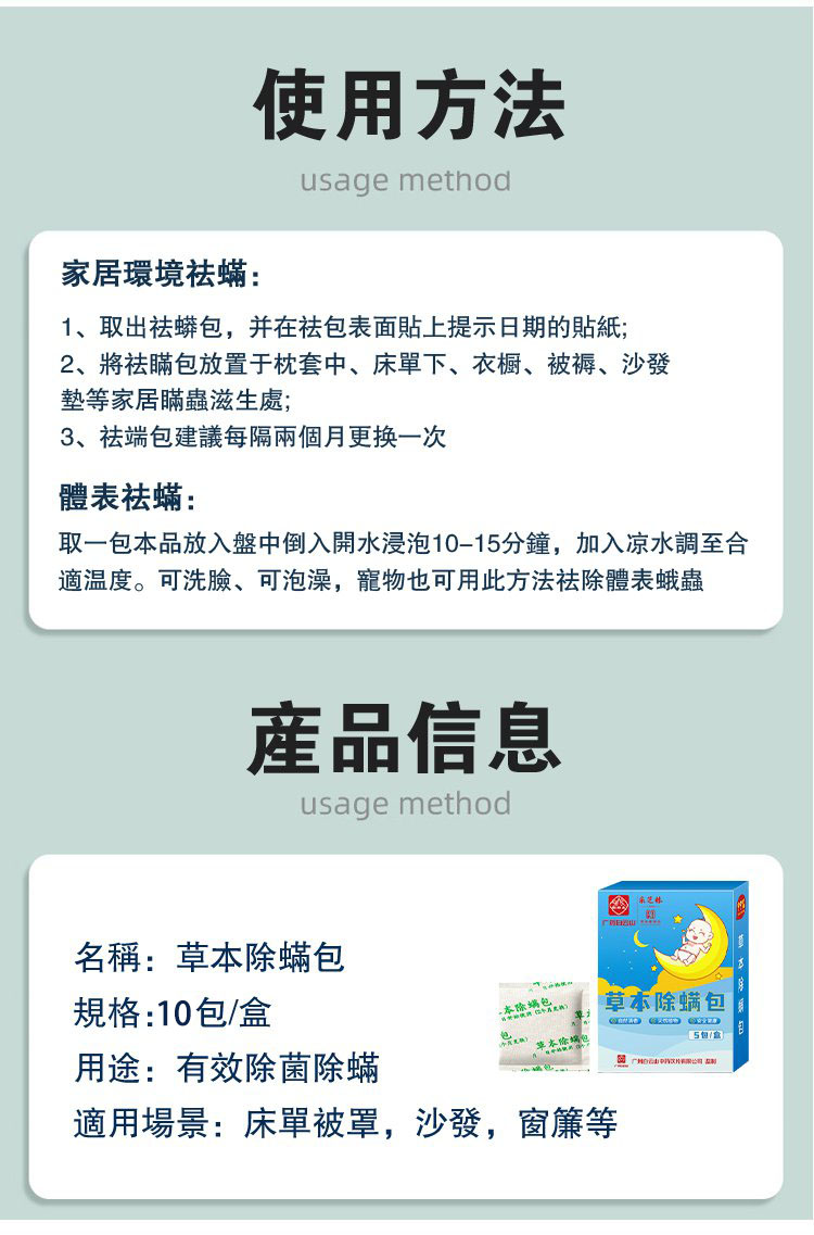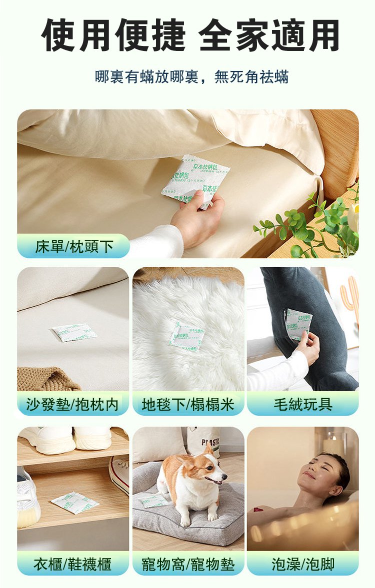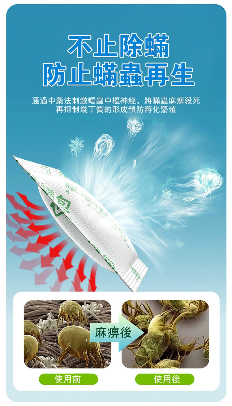 半小時前草本除蟎包「春夏季節」蟎蟲細菌容易滋生繁殖快,有了這款除草本除蟎包,在也不用擔心了!! - 體驗裝「買一送三」四入組NT$ 999(均價$249/盒)共40小包