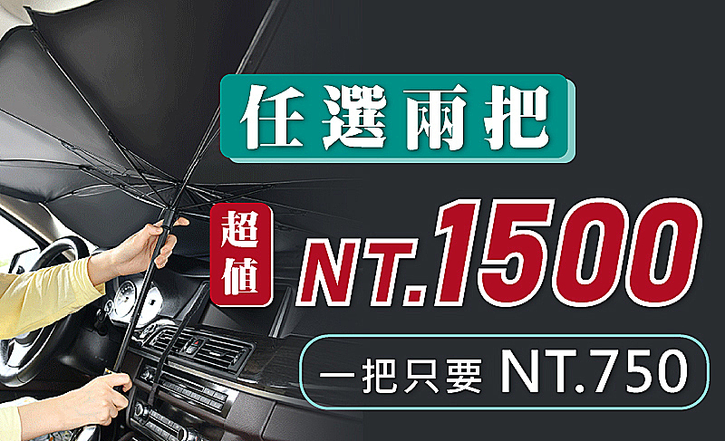 11分鐘前新一代車用遮陽傘/【高效防曬】高效阻擋99%紫外線一招讓你上車不再燙屁股/輕鬆解決愛車過曝/內裝老化問題! - 【夏季超值組合】任選兩把 NT$1500