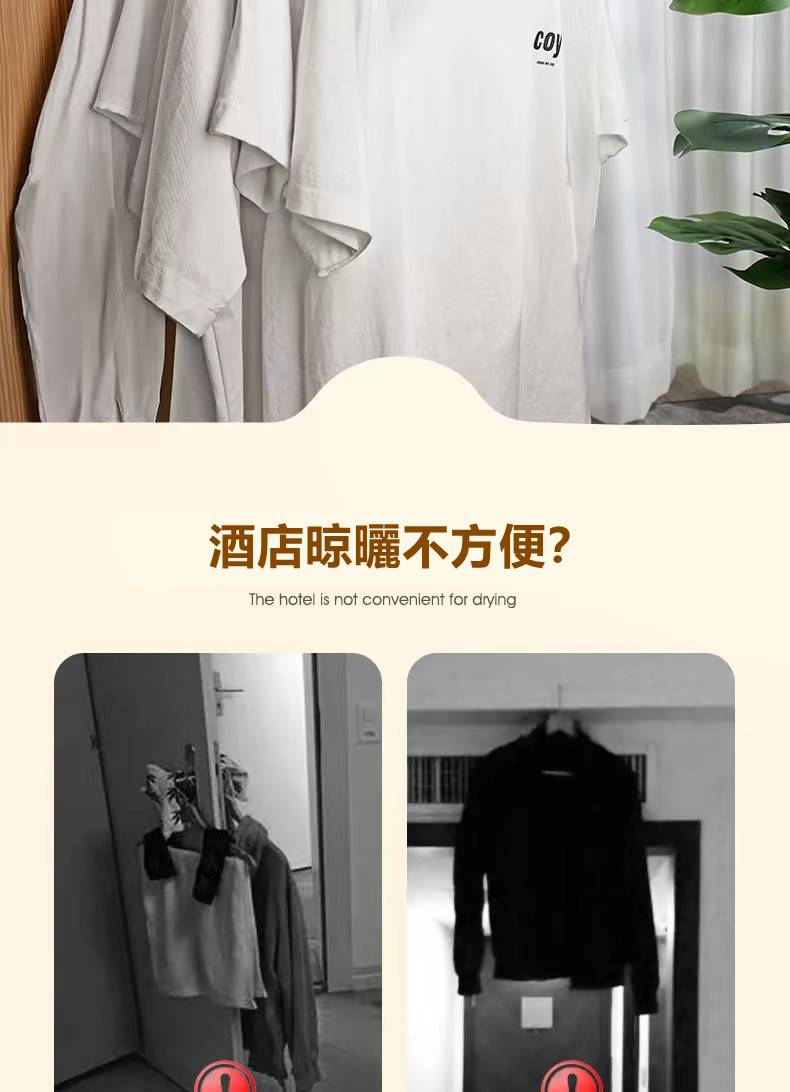 2分鐘前 【多功能折疊晾衣架】 便攜旅遊酒店晾曬掛架 出差必備晾衣神器! - 【破盤嗨購】買三送九 12入組NT$1398